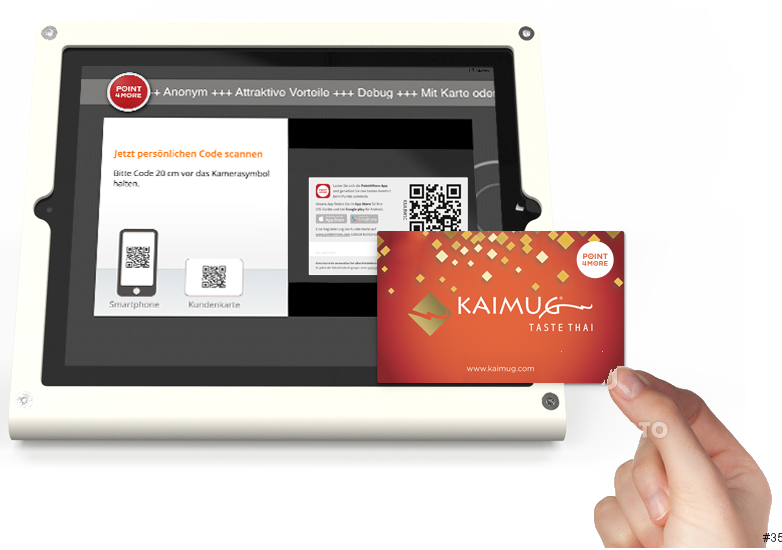 Im Geschäft Code vor das Tablet halten, dann wird der Punktestand angezeigt.